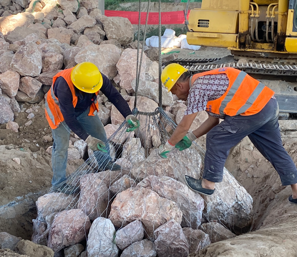 合金網兜又稱石籠網兜。石籠網袋是由雙絞合六角形金屬網編織而成的圓柱形袋狀物。在施工過程中,石籠網袋內填充石料,構成結構牢固,透水性的建筑材料,用于河道防護等緊急預備工程。